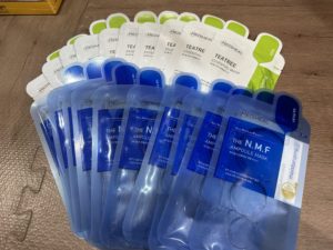 有名な顔のパックとピーナッツのお菓子♡